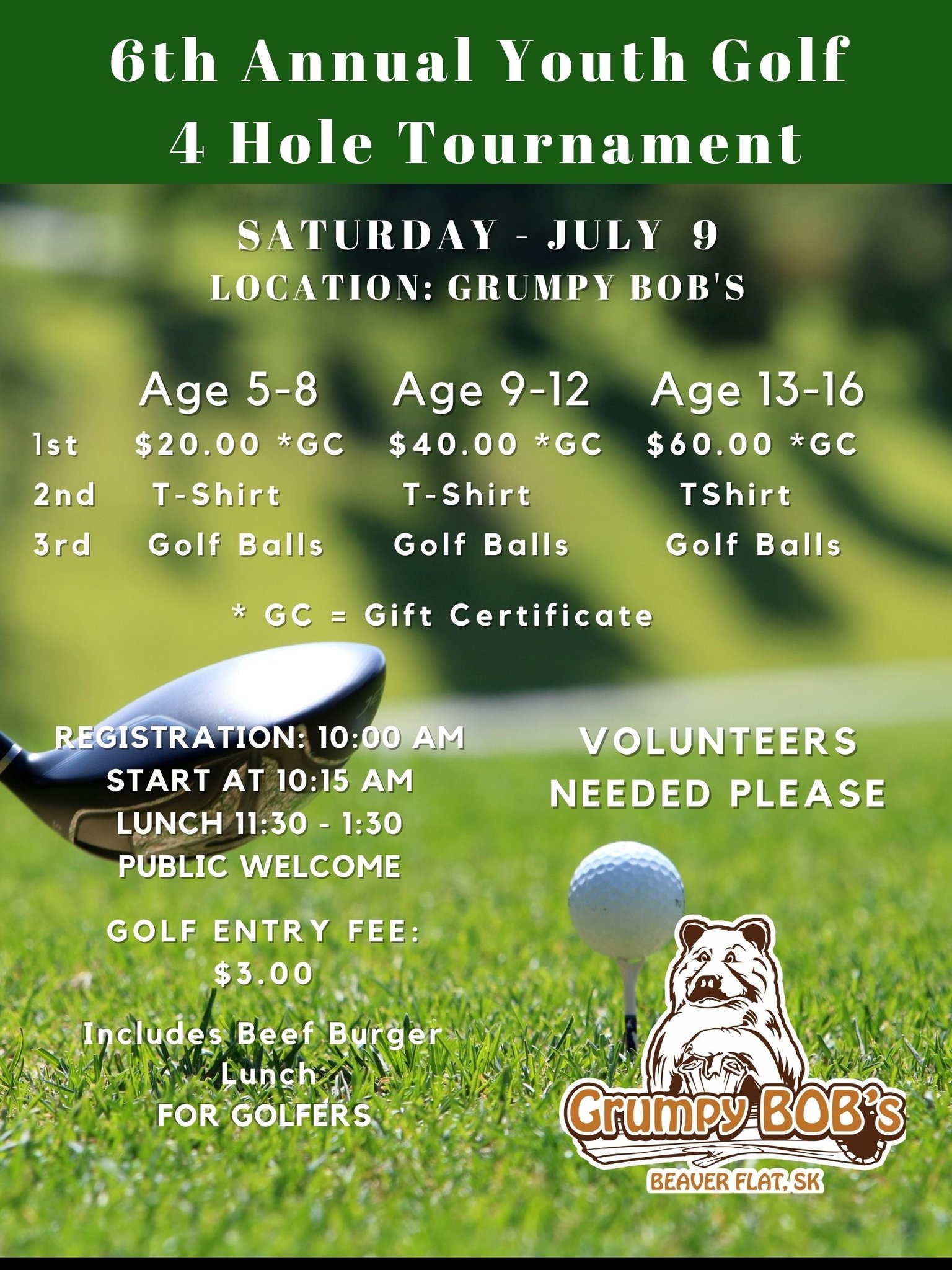 Grumpy Bob worked with the parents in the village to put on a Youth 4 hole golf tournament. A hot lunch was available every Saturday as well. Covid 19 and government recommendations presented challenges which we worked with.